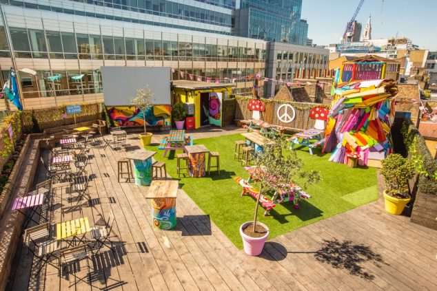 The roof terrace at the Queen of Hoxton is a